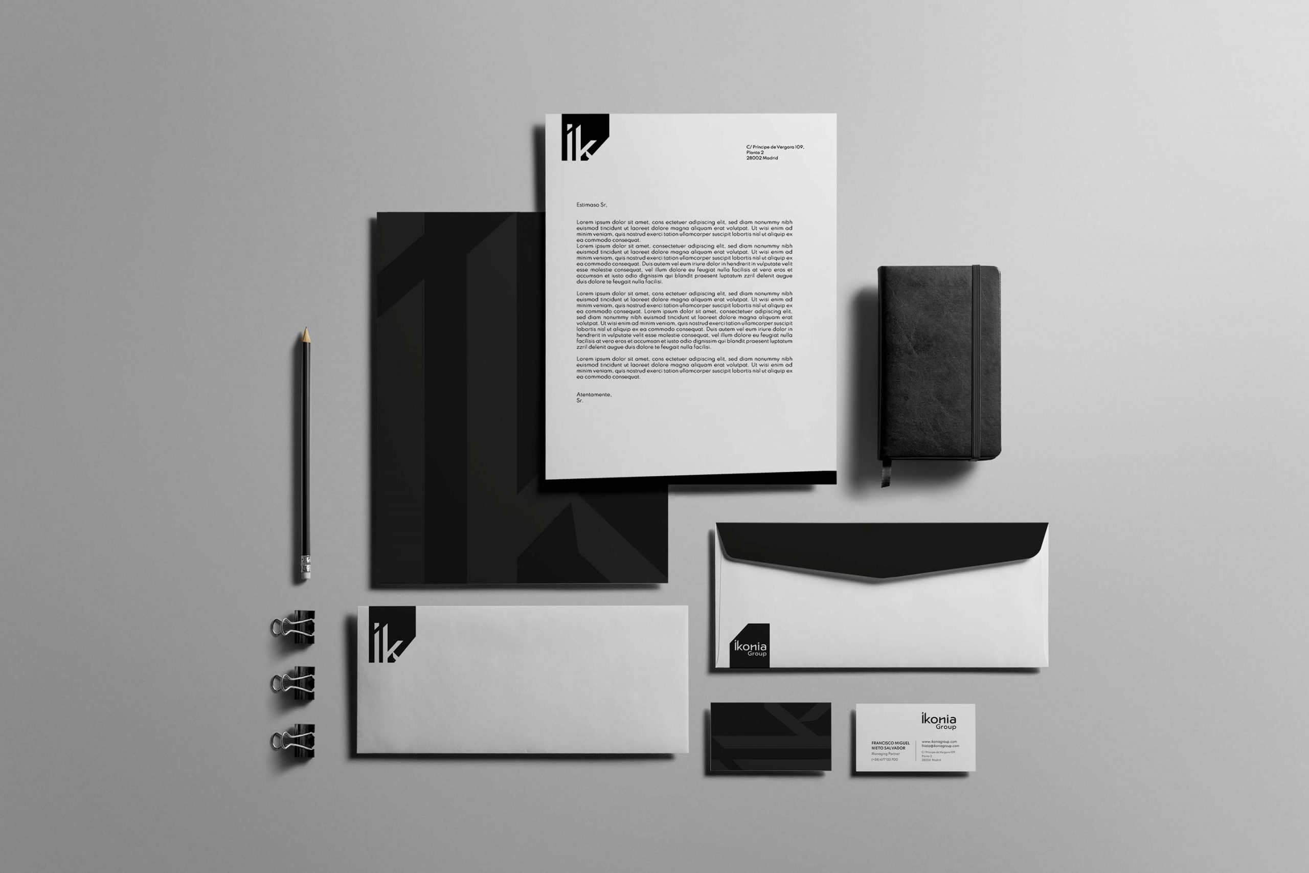 Con Ikonia Group partíamos de cero. El reto consistía en construir una propuesta de marca integral que reflejara profesionalismo, excelencia y visión estratégica en el ámbito inmobiliario. Con una sólida experiencia en el sector, el objetivo fue proyectar una identidad capaz de transmitir confianza, calidad y diferenciación, sin recurrir a los clichés habituales del mercado. La estrategia se centró en definir una identidad visual elegante, sobria y contemporánea, que conectara con un público exigente —tanto nacional como internacional—, interesado en proyectos inmobiliarios de alto valor arquitectónico, sostenible y funcional. Cada elemento de la marca fue concebido para comunicar solidez, precisión y compromiso, alineados con los valores y objetivos de Ikonia Group.